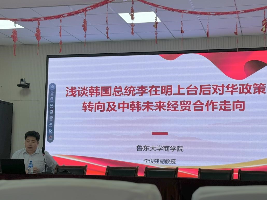 10月31日下午,商学院李俊建副教授在商学院6楼会议室作了题为“浅谈韩国总统李在明上台后对华政策转向及中韩未来经贸合作走向”专题报告。学院24、25级国际商务全体研究生参加了本次专题报告。